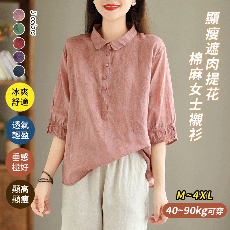 女士顯瘦遮肉提花棉麻襯衫