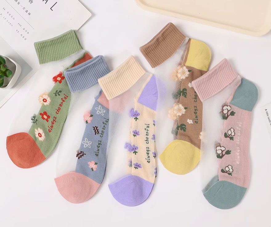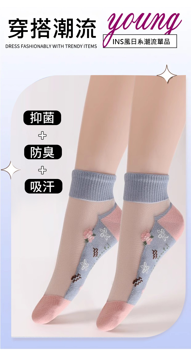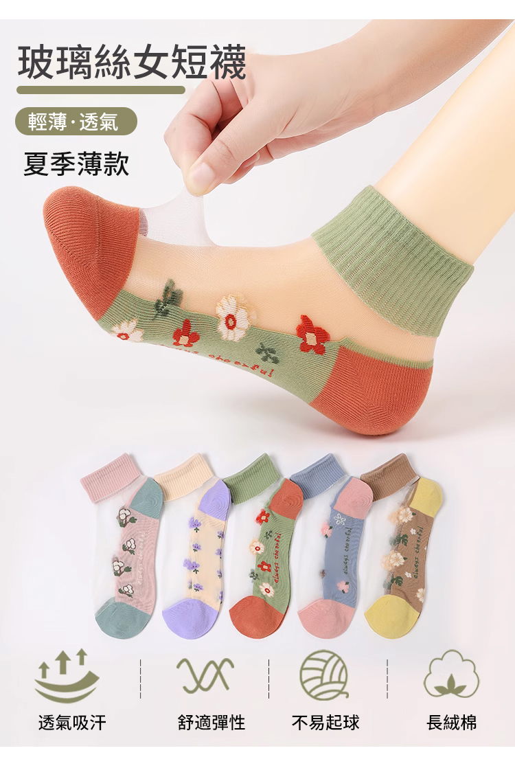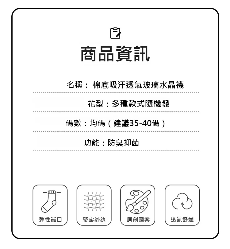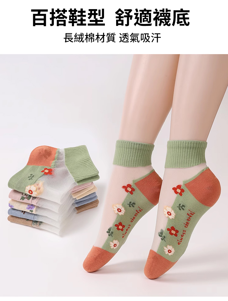 棉底吸汗透氣玻璃水晶襪